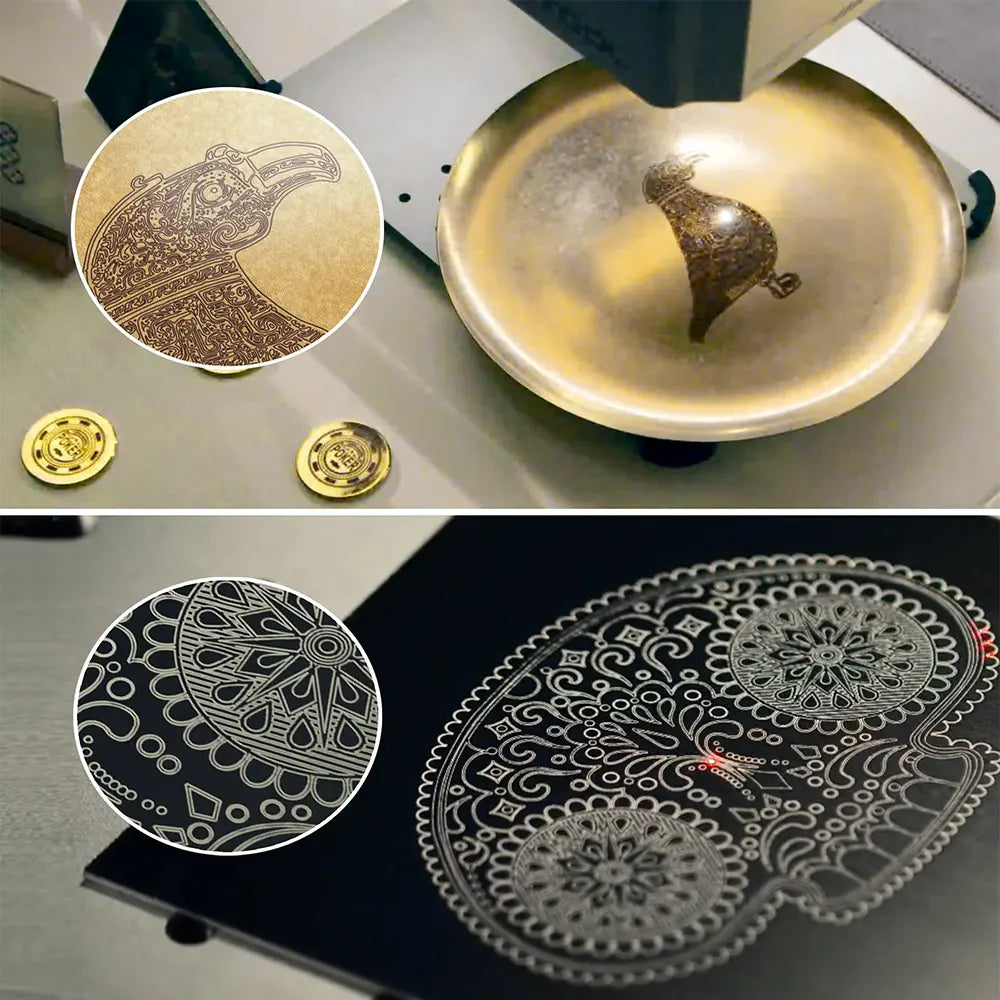 Harnessing MaxMetal technology, T2 Pro blows other engravers out of the water in metal engraving. The 1064nm wavelength laser optimizes material absorption, ensuring deep, clean etching. Advanced Pulsed-Laser algorithm delivers high-impact energy, akin to micro-hammer strikes, vastly outperforming conventional continuous lasers.
